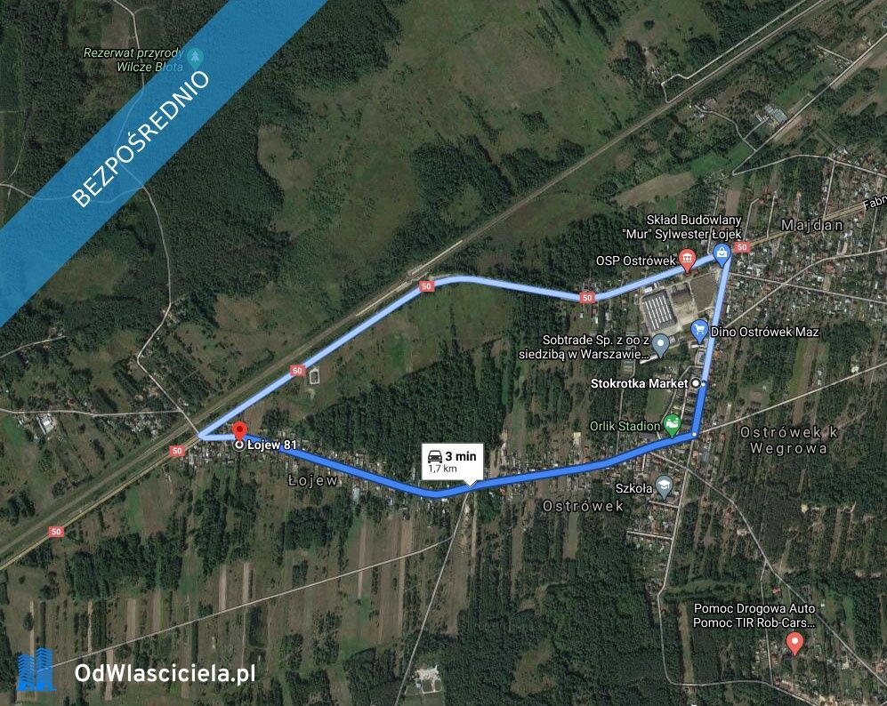 • Komunikacja: 950 m do PKP Ostrówek Węgrowski, 200 m do przystanku PKS.